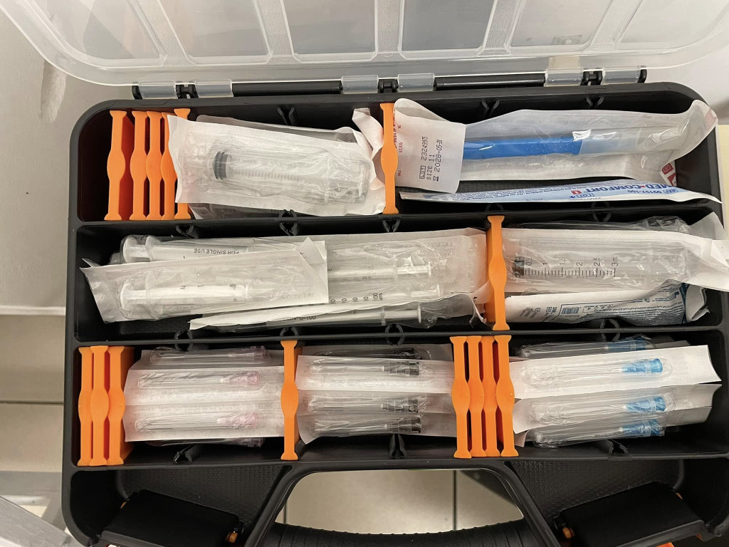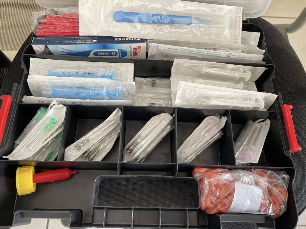 A dobozban elfér továbbá – és ajánlott is benne tárolni – 1 doboz Betadine 100 ml oldat és Hyperol tabletták tetszőleges mennyiségben.
