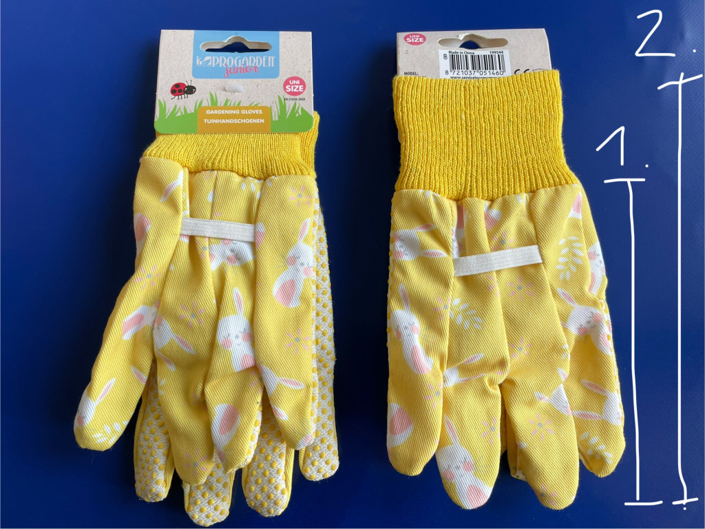 Kézfej hossza a középső ujj végéig: 13 cm 1. Jelölés a képen
